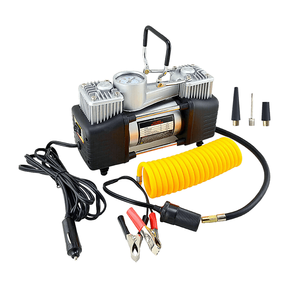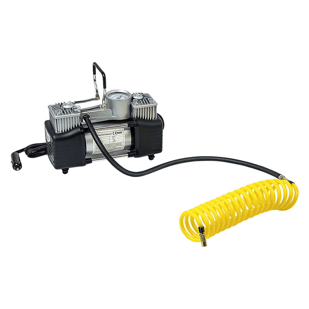 Its working capacity of 150 PSI fills your tyre at a rate of 85 litres per minute. With its dual-cylinder power, it can easily accommodate tyres on even larger vehicles, such as 4x4s. A bleed valve protects the compressor by releasing the pressure built up inside the tank from air or other gases. Keep it in your car's boot for easy access when you travel. It comes with its own carry bag, so you can take it along with you wherever you go. Its top-quality construction ensures that it will last for years to come. Don't wait to protect you and your family from the hassle and danger of a flat tyre. Order your portable air compressor today!
