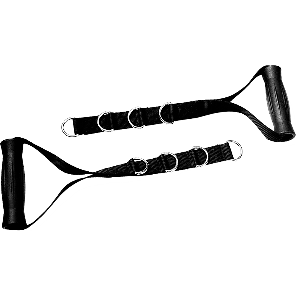The handles are adjustable with 4D shaped metal rings that are 5mm in diameter, allowing the carabiner clips found at the end of most machine cables to be placed according to preference.