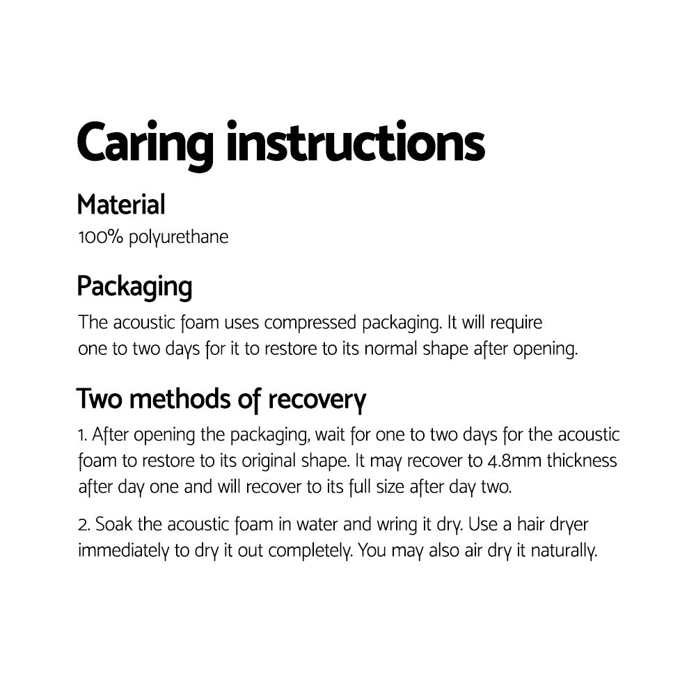 Note: The acoustic foam comes in compressed packaging and will need one to two days to restore to its normal shape and size.