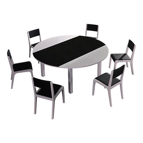 Package contents: 1x7 Pieces Dining Suite Dining Table & 6X Chairs in Round Shape High Glossy MDF Wooden Base Combination of Black & White ColouX