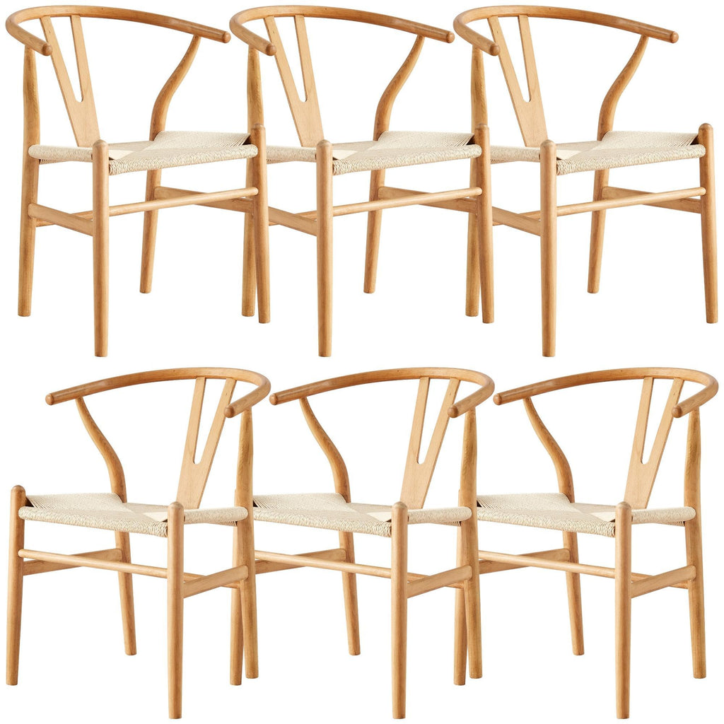 Anemone Set of 6 Wishbone Dining Chair Beech Timber Replica Hans Wenger Natural
