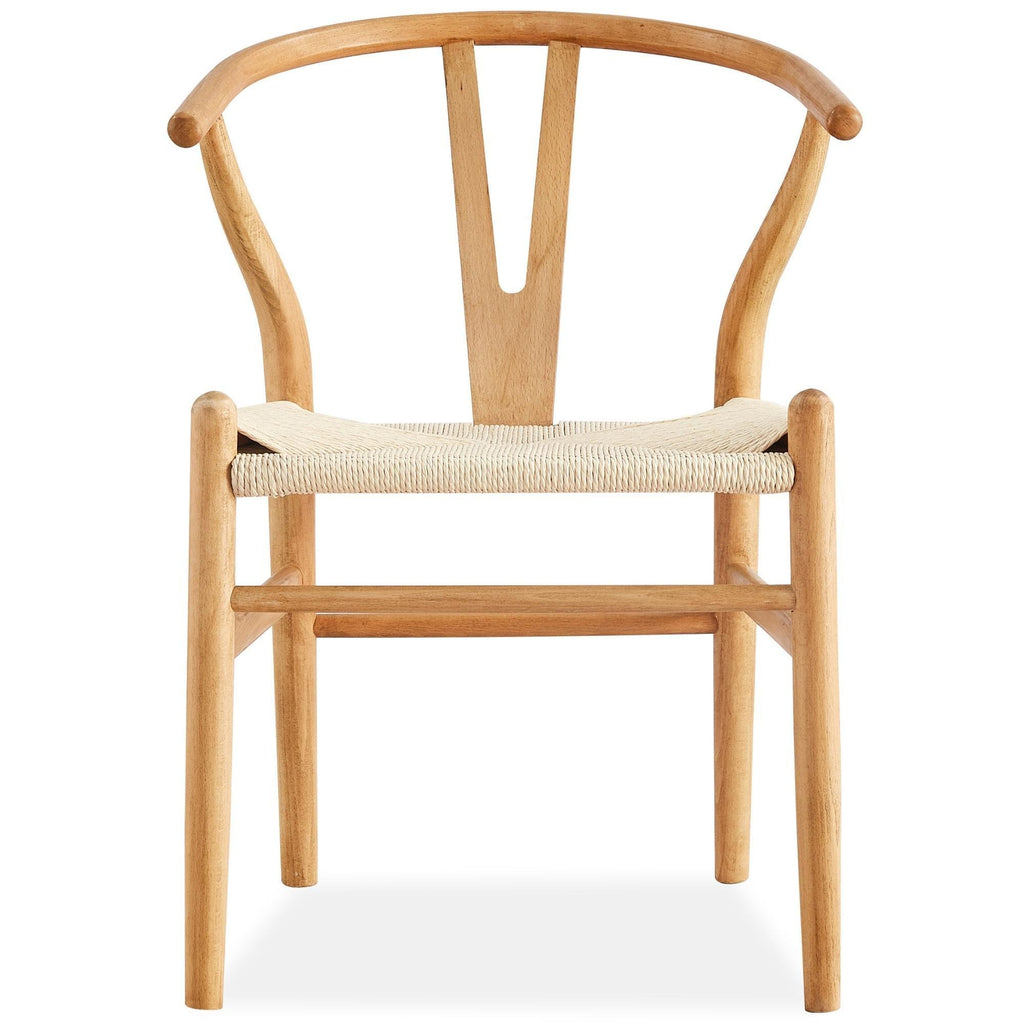 A classy dining chair enhances mealtime delight. Feel it by decorating your dining area with this 6-piece set of attractive dining chairs in natural colour, designed in the Scandinavian style. The iconic Hans Wegner Replica Wishbone chairs, featuring a timeless curved back and armrest with a hand-woven paper twine seat in natural colour, ensure lasting comfort. Because of their wooden construct, and strong legs, they are a beautiful addition to your dining space. They look stunning in almost any decor setting, thanks to their homely design and sleek style. The beautiful chairs are made of high-quality Beech wood and Recycled Paper Twine, obtained in a sustainable manner. A one-year warranty is included with the fully assembled dining chairs.