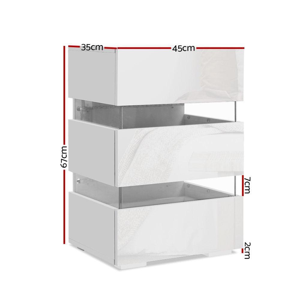 Artiss Bedside Table Side Unit RGB LED Lamp 3 Drawers Nightstand Gloss Furniture White