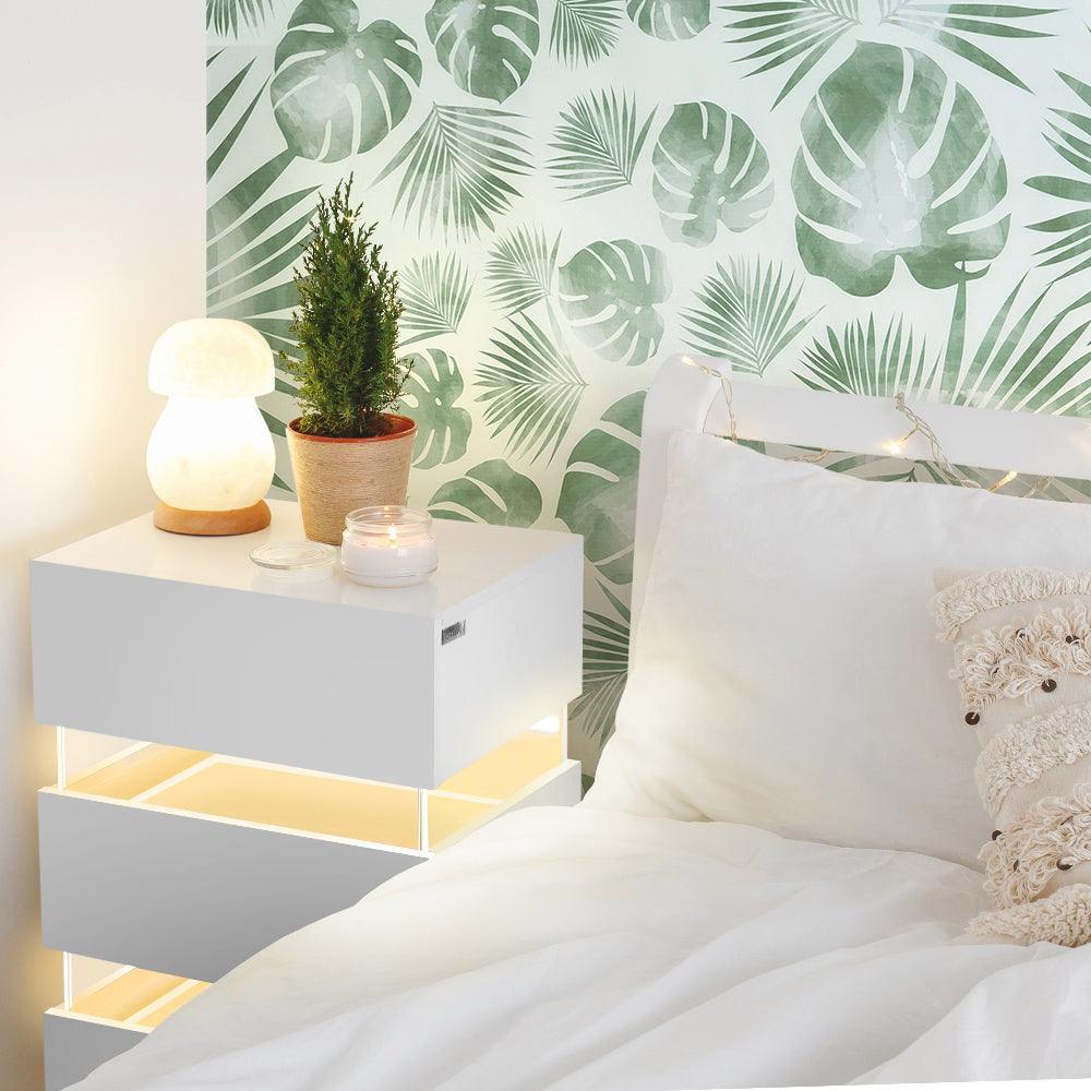 Tired of fumbling in the dark for a light switch in the middle of the night? With our Artiss LED Bedside Table, your problems are solved. The bedside table comes with built-in LED lighting that can be customised into 16 different colours and 4 different effects to suit your preference. Not only will it create a beautiful ambience, it will also save you from buying extra bedside lamps or nightlights. Three deep drawers sliding on smooth coated runners provide ample storage space. Better still, the handle-free design gives it a modern vibe that stands out from the mundane. Constructed from quality particle board and acrylic glass with smooth melamine finish and high-gloss UV front, the bedside table is durable and easy to maintain. And it will be the perfect addition to your modern bedroom with its contemporary and linear design. Or you can even keep one in the living room to wow all your houseguests.