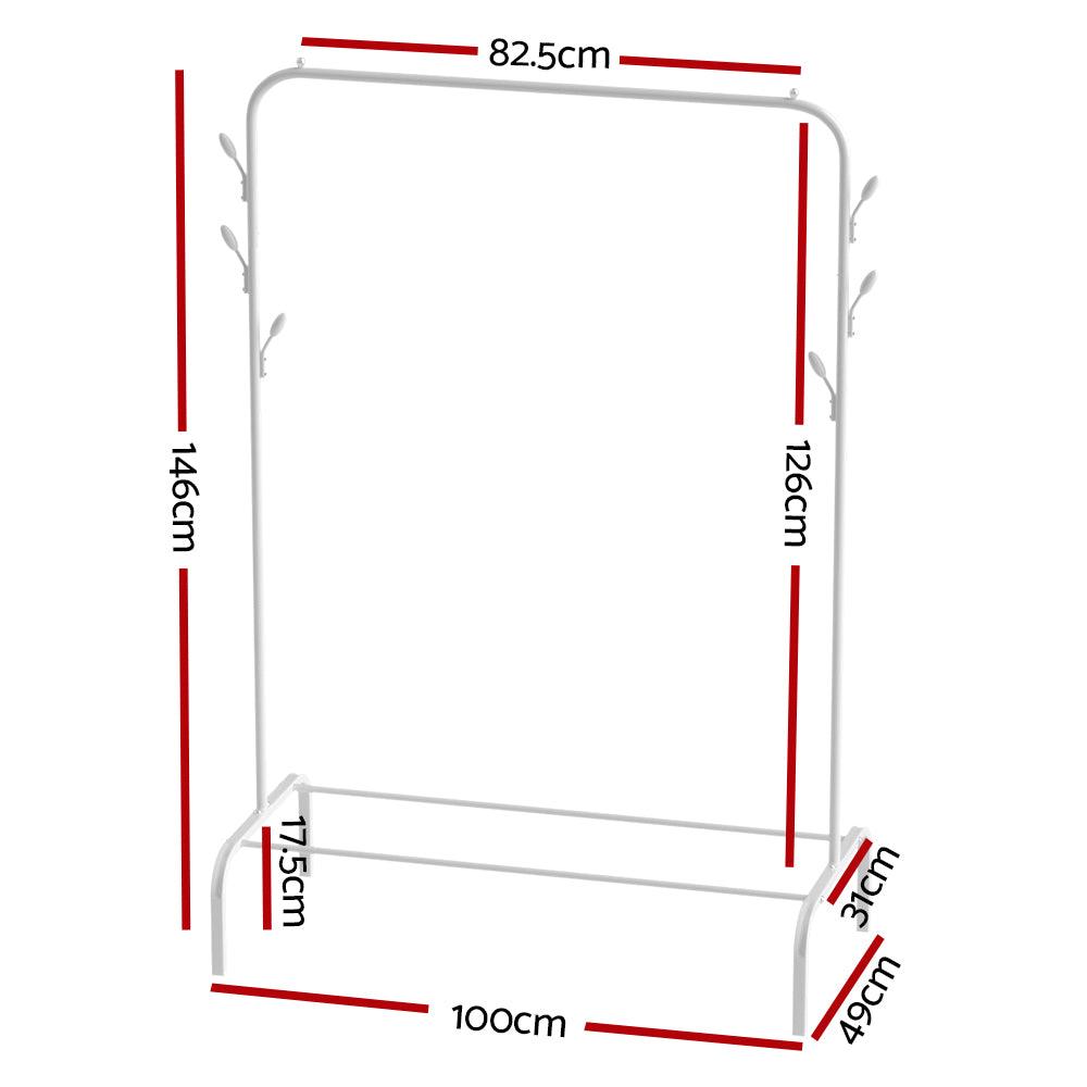 Need a quick fix to keep your clothes neat and tidy or need extra wardrobe space to keep your most loved clothing pieces? Say hello to our Artiss Jena coat rack. With this clothing rack, you can put your most loved collection on display and keep it neat and tidy and free from wrinkles. Flaunting 2-in-1 design, our clothes rack offers enough space to hang your favourite clothing and a storage rack beneath to place your footwear or storage boxes. It also has six bud hooks to hang your sling bags and purses. The clothing rack is made from solid, powder-coated metal tubes, which ensures it sturdiness and durability. It has great weight holding capacity and can hold multiple garment pieces. This clothing rack also offers great resistance against rust and corrosion, and the strong square tube legs ensures ultimate stability and prevents shaking. You can use it at home or even at clothing retail shops. It features an anti-slip bead design on the hanging rod, which prevents the hangers from slipping down. Our clothing rack is lightweight and can be easily moved from one room to another. It takes just a few minutes to assemble so you are ready to use it in no time. Practical and convenient, purchase our Artiss Jena clothes rack today.