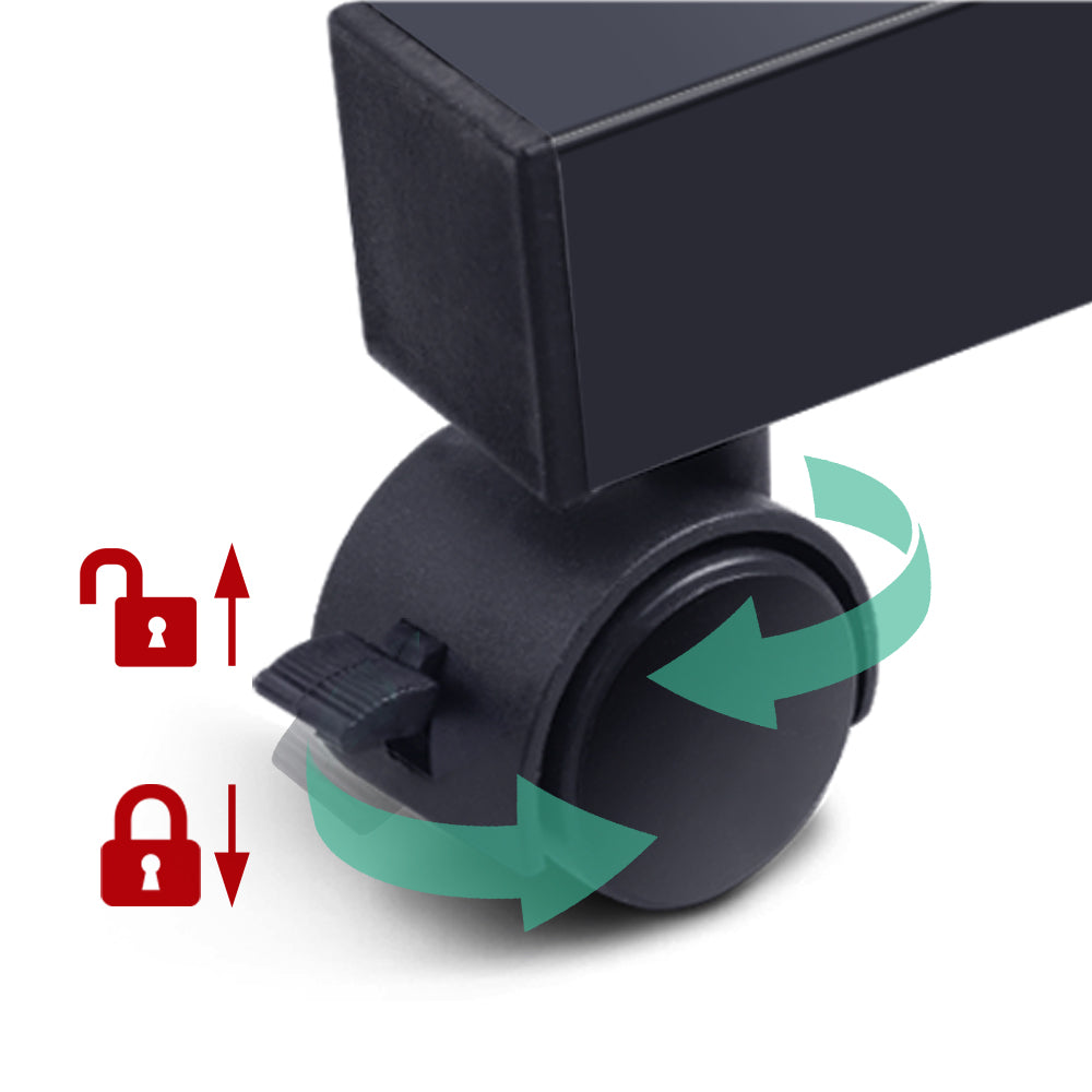 Designed to be strong and lightweight, our Mobile Laptop Desk has ample desk area to work efficiently without feeling cluttered. The height is easily adjustable to your preference and the U-shape design fits in well with most furniture such as sofas and beds to get a comfortable sitting position. The castor wheels rotate 360 degrees and can be readily locked down in place. Or, if you like, remove the detachable wheels for a more permanent fixture. Not least, with its thick 17mm MDF board desk top and sturdy powder-coated H-shape steel frame, our Mobile Laptop Desk is absolutely versatile to function as any type of table top.