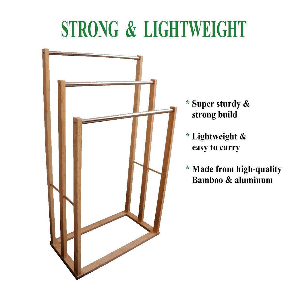 MULTIPLE USES: this bamboo Towel Bar Holder Rack 3-Tier Freestanding could be used as Towel Racks, Towel Rail Bathroom Accessory, Shower Hand Dish Towel, Towel Holder or Hand Towel Bar