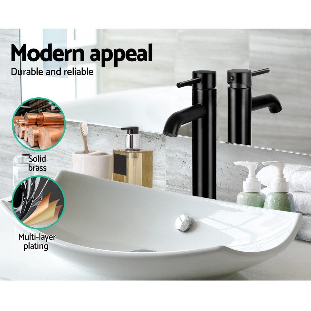 Cefito Bathroom Basin Mixer Tap Round Tall Faucet Vanity Laundry Black