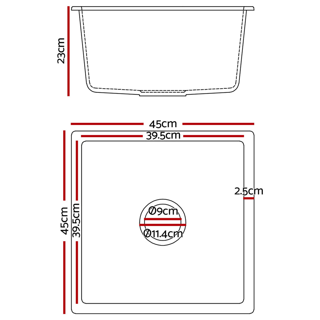 Cefito Stone Kitchen Sink 450X450MM Granite Under/Topmount Basin Bowl Laundry Black