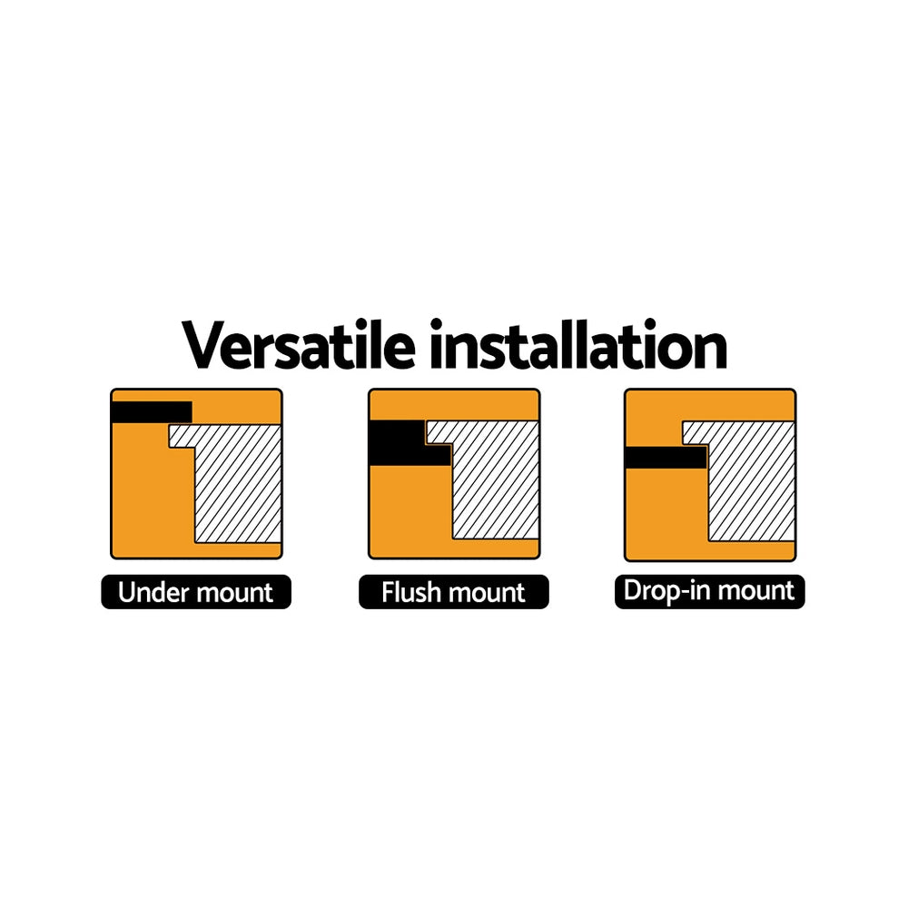 Suitable for drop-in mount, flush mount, and under mount