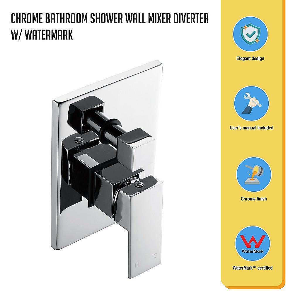 Chrome Bathroom Shower Wall Mixer Diverter w/ WaterMark