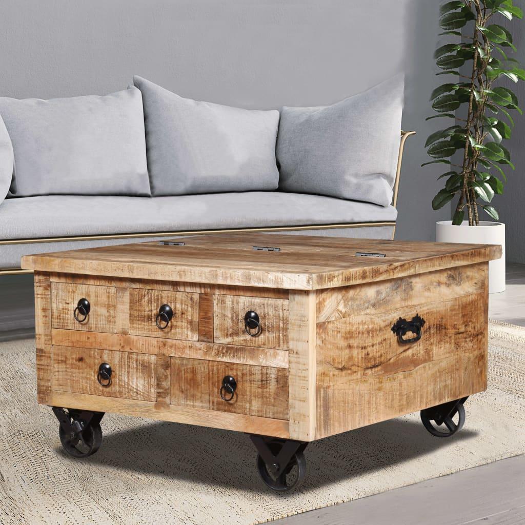The coffee table is handmade of solid rough mango wood which is stable, durable and beautiful, and the craftsmanship adds to its spectacular retro style. Every step of the process is carried out with the greatest care, be it polishing or lacquering.