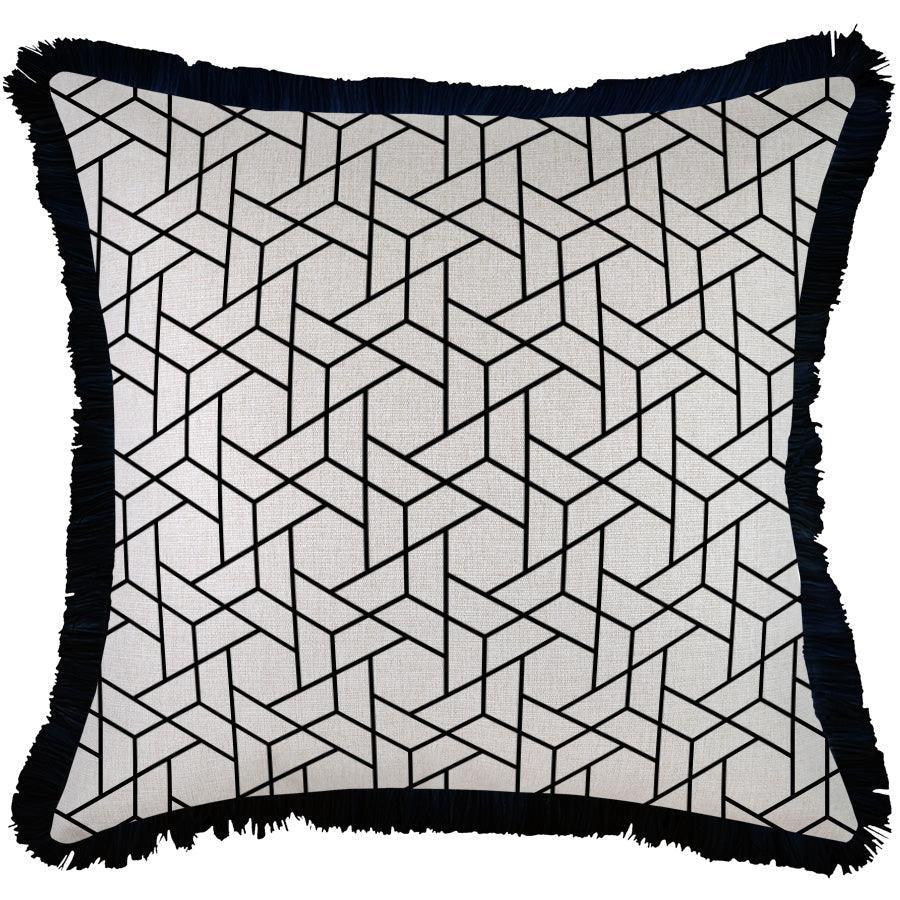 Cushion Cover-Coastal Fringe Black-Milan Black-60cm x 60cm