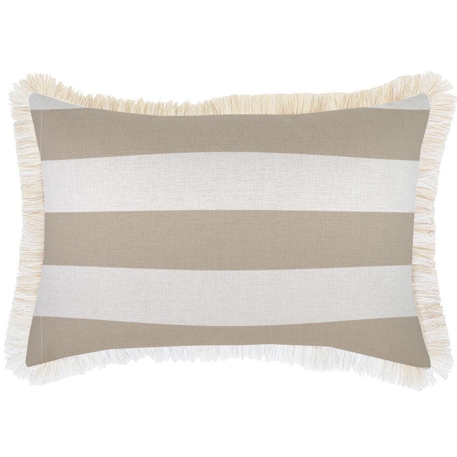 Cushion Cover-Coastal Fringe Deck-Stripe-Beige-35cm x 50cm