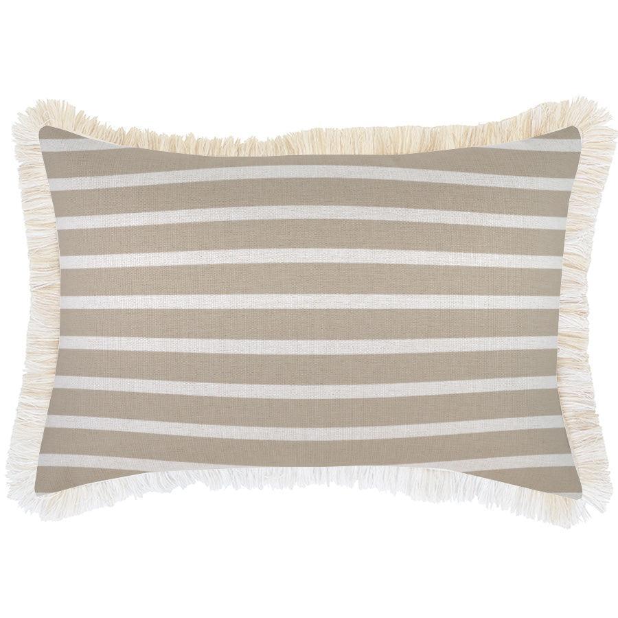 Cushion Cover-Coastal Fringe Natural-Hampton Stripe Beige-35cm x 50cm