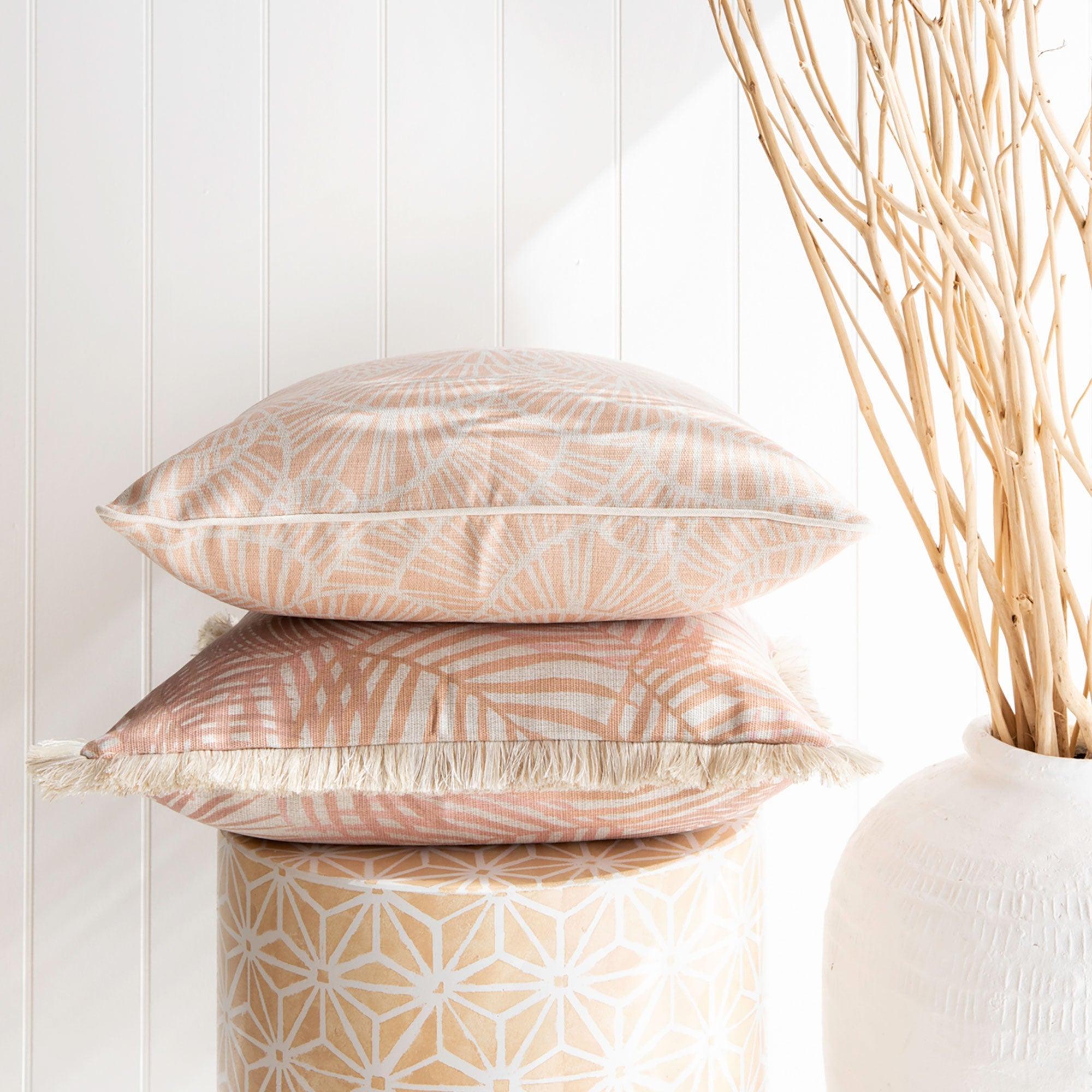 Cushion Cover-Coastal Fringe Natural-Seminyak Blush-45cm x 45cm