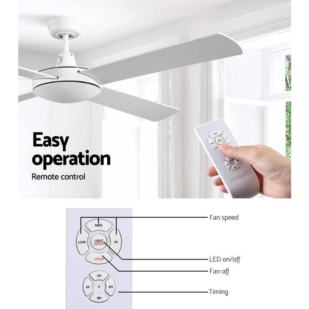Devanti 52'' Ceiling Fan AC Motor 4 Blades w/Remote - White