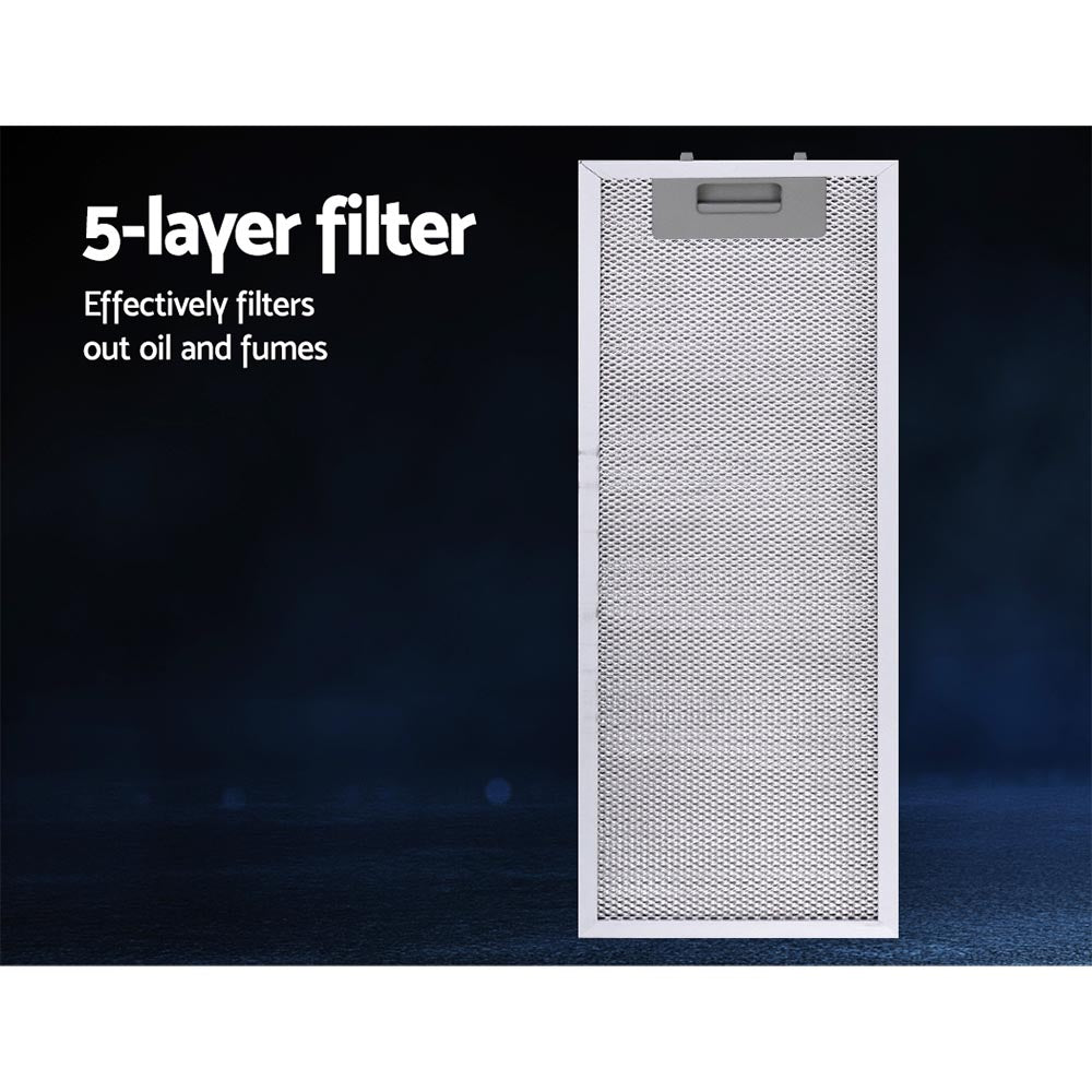 Thick smoke and steam from your cooking. Stifling odours all around. And the hood is not doing its work in clearing the mess. Not anymore with our Devanti 520mm Undermount Range Hood. The undermount design is space-saving and allows the range hood to blend seamlessly into your kitchen. Featuring a powerful extraction power of 420m³/h extraction from a high performance 108W rated motor, our stainless steel range hood will clear the air of smoke, steam, odours and vapours in no time at all. The non-stick and removable 5-layer aluminium grease filters also ensure all grease is efficiently captured. Setting all this up is a 3-speed fan that can be easily selected with the button switches. Bright LED lights are also built-in to provide vivid illumination of your cooking area as you would surely appreciate.