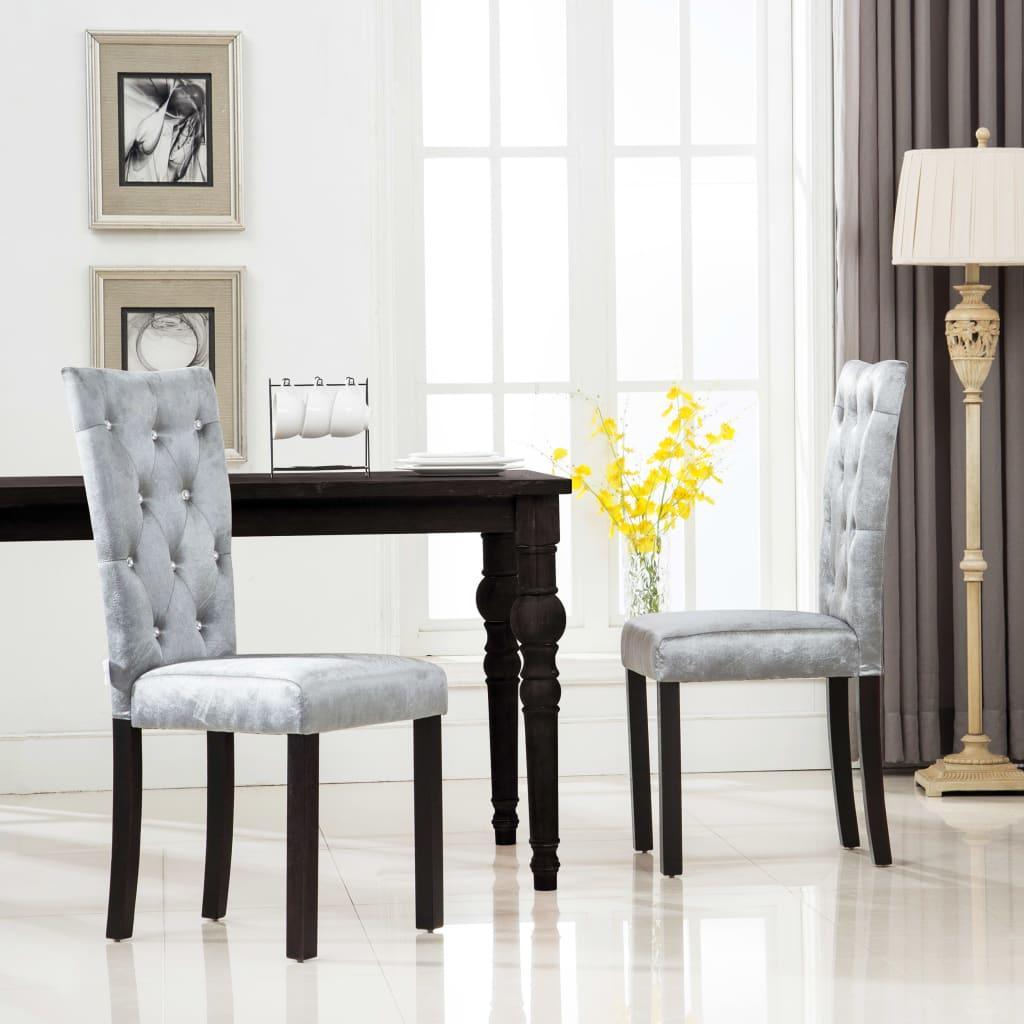 The chairs have a sturdy, solid wooden frame and are upholstered in a high-quality velvet fabric that is soft and durable. Thanks to their thickly-padded seats and backrests, these dining chairs are highly comfortable.