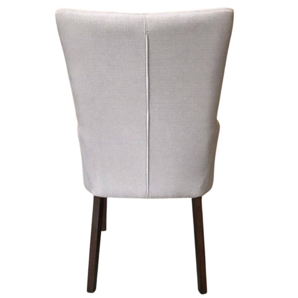 The journey to a comfortable dining experience begins with this 3-piece set of carver dining chairs. Bring home this beautiful dining chair with arms that promises both comfort and strength with its button-tufted seat, fabric upholstery, tapered legs, and a strong structural frame of sustainably harvested rubber wood. Decorate your dining area with these chairs in a light grey colour with antique walnut legs and enjoy the beauty of the dining area setting. The dining chairs are designed in the French Provincial style and provide comfortable back and lumbar support. Because of their gorgeous looks and designer stitching on the upholstery, they are a beautiful addition to your living area. And thanks to their homely shape, they look stunning in all decor settings and can be paired with a dining table of any style. A one-year warranty is included with the fully assembled dining chairs.