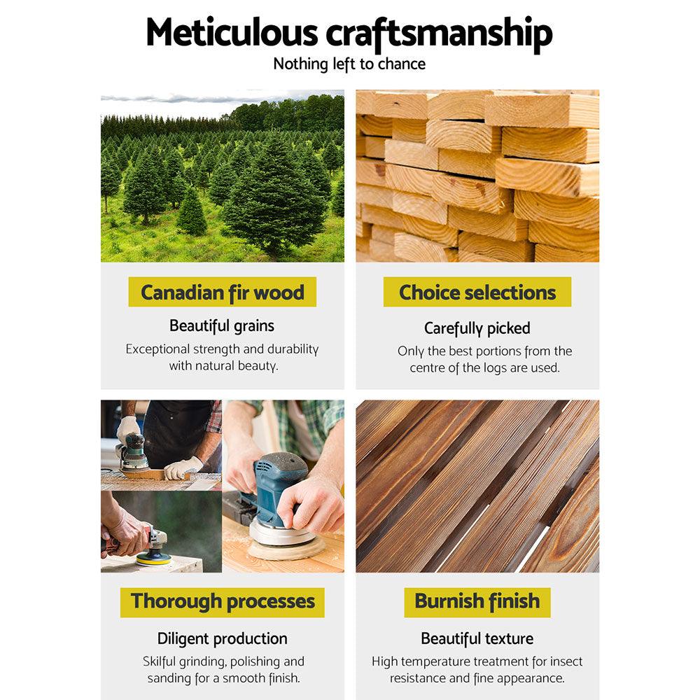 Enhance the look of your garden with our beautiful Gardeon wooden garden wheel. It makes an elegant upgrade. Featuring classic wheel design with spokes, our wooden garden wheel will provide both decorative and functional appeal. It’s crafted from solid fir wood with durable iron that helps you achieve a rustic look for your garden and ensures sturdiness and durability. The wooden wheel comes with four buckets with iron ring and strong and reliable fixings for a better hold, and the triangle-shaped base gives the wooden wheel extra strength, support, and stability and prevents tilting. Additionally, its solid construction makes the wheel sturdy and capable of handling weight. So rest assured that our garden wooden wheel will withstand the test of time. Our Gardeon wooden garden wheel also offers natural resistance to rot and pests, and its weatherproof design makes it ideal for outdoors. Shop our Gardeon wooden garden wheel to give to garden a rustic and classic look and feel.