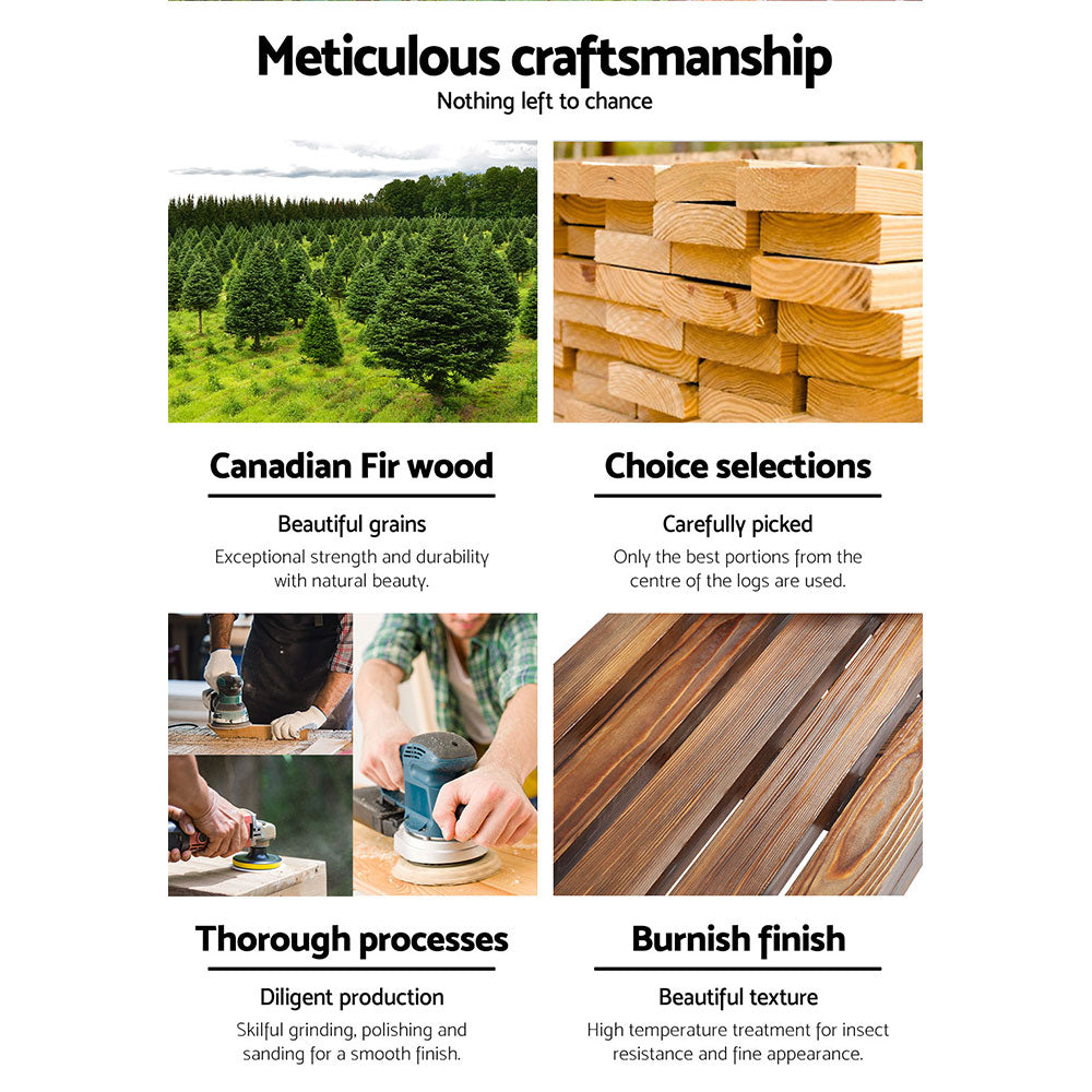 Give your home a rustic feel with our Gardeon Wooden Wagon Wheel. Suitable for both indoor and outdoor use, this wagon wheel is a lovely collectible that evokes some vintage charm as well as complementing your garden or home décor. Hang it up and set it as a garden feature, the wagon wheel is made of fir wood and treated for use in all kinds of weather and has a smooth and burnt finish to add some authenticity to its well-worn appearance.
