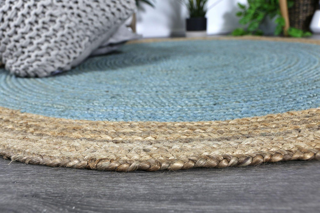 Hampton Blue Centre Jute Rug 150x150cm Round
