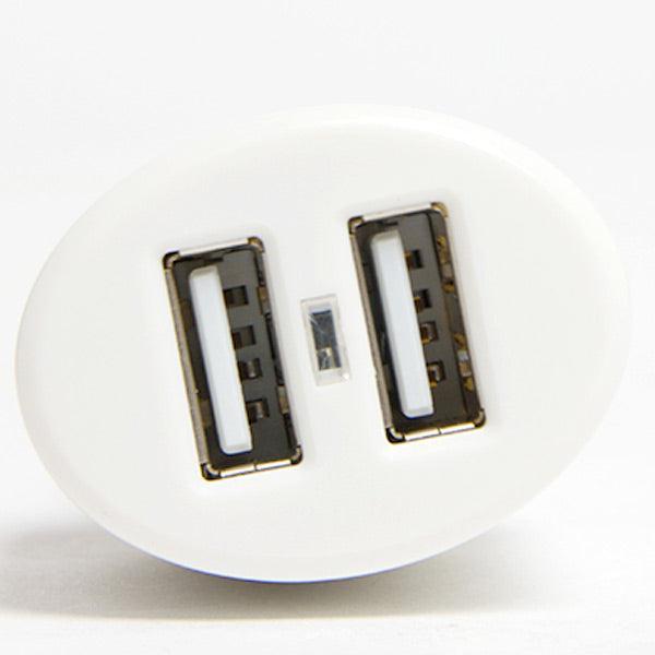 Featuring a sleek and compact design with 2 x USB outlets side by side, the clean white colour of the exterior matches with cables and accessories of the most popular brands of gadgets. The white colour unit also stands out in the often dark car interior. A LED indicator clearly displays the charging status and an inherent circuitry design stops overcharging using an in-built intelligent chip.