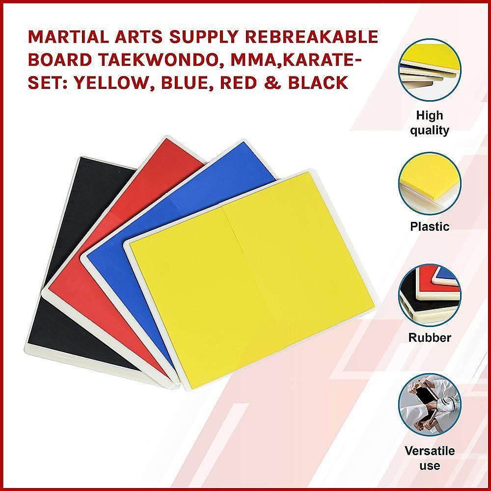 Martial Arts Supply Rebreakable Board Taekwondo, MMA, Karate-Set: Yellow, Blue, Red & Black