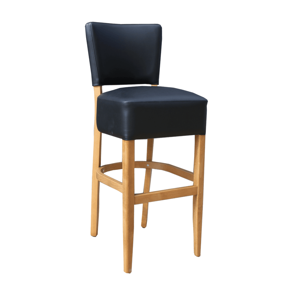 Memphis Club Barstool - Black Dolaro Vinyl Seat and Backrest - Natural Frame