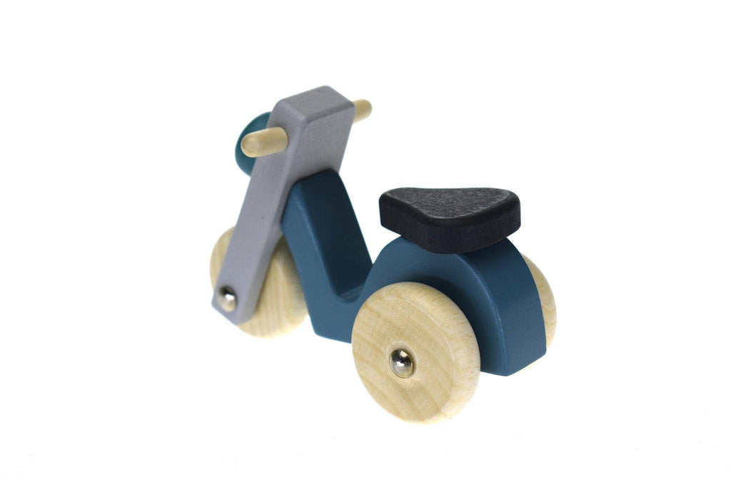 Trendy, retro styled, wooden motor scooter. Easy for small hands to hold. Perfect for zipping about the city streets. Beautiful to look at and strong enough to play with too