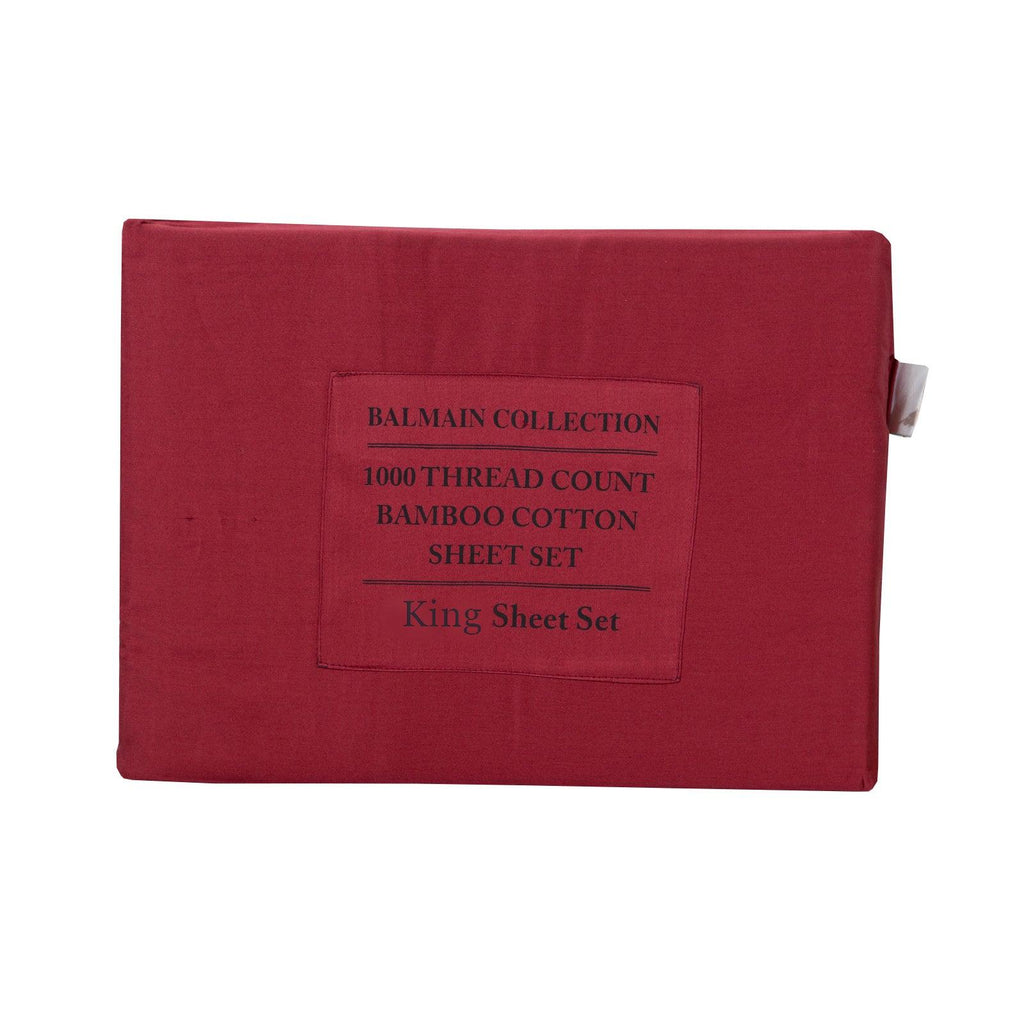 Royal Comfort 1000TC Balmain Hotel Grade Bamboo Cotton Sheets Pillowcases Set - King - Bordeaux