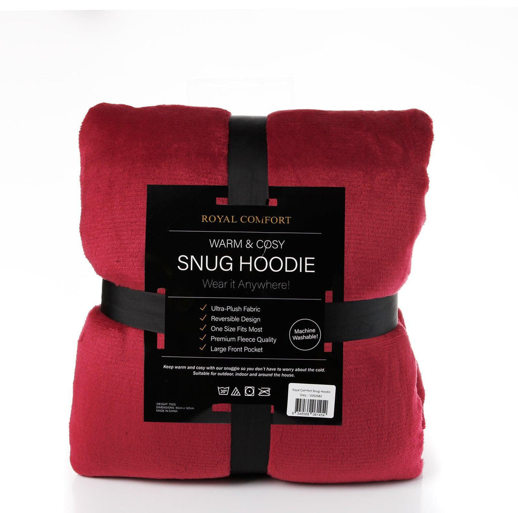 Royal Comfort Snug Hoodie Nightwear Super Soft Reversible Coral Fleece 750GSM - Red