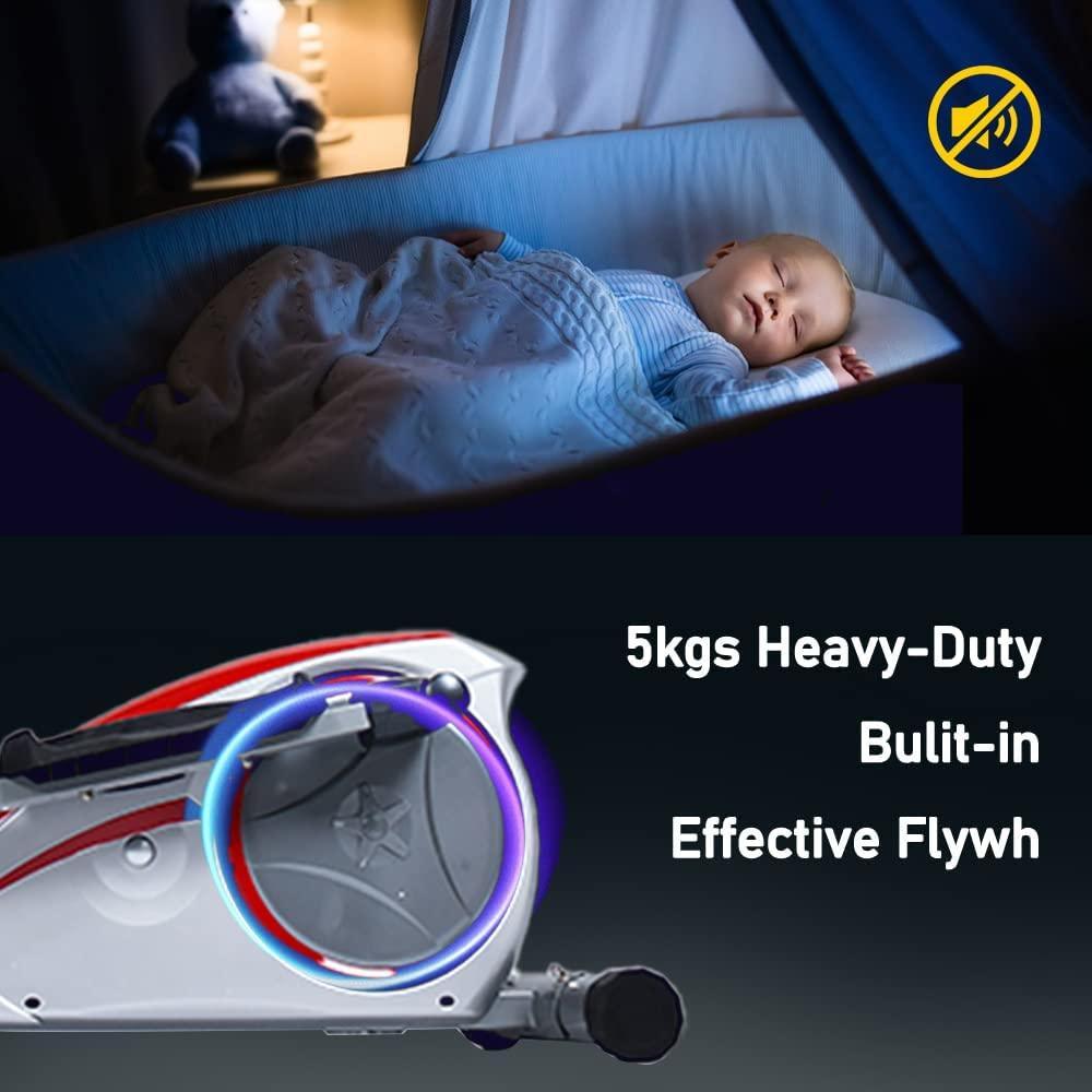 Hyper-Quiet Magnetic Drive System - We developed the latest technology magnetic system and eliminates noise, also control the sound at 20DB even after millions of times workout. No disturbing on working, reading, and sleeping at home.
