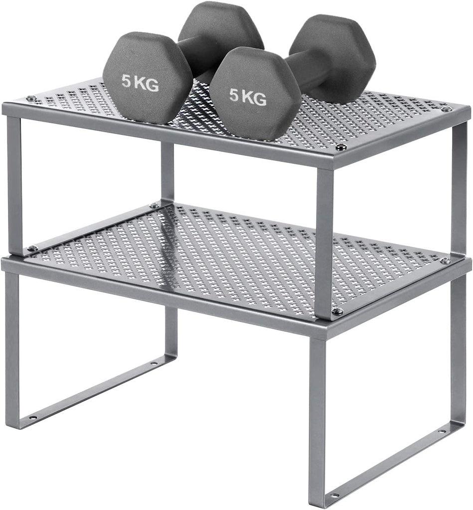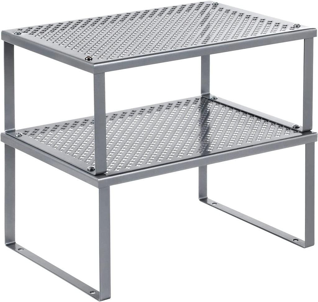 SONGMICS Cabinet Shelf Organizers Set of 2 Metal Kitchen Counter Shelves Silver