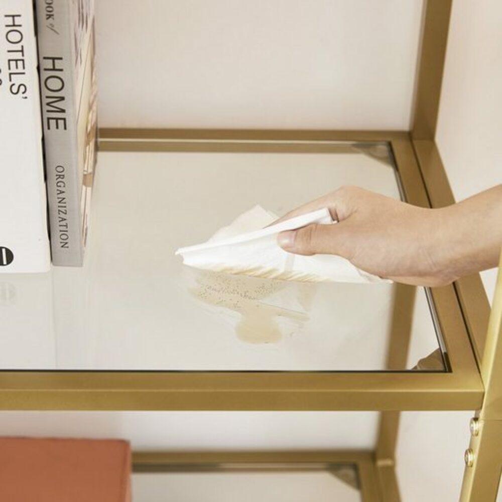 With 6 mm thick tempered glass and a powder-coated metal frame, each level of this bookcase can be loaded up to 10 kg